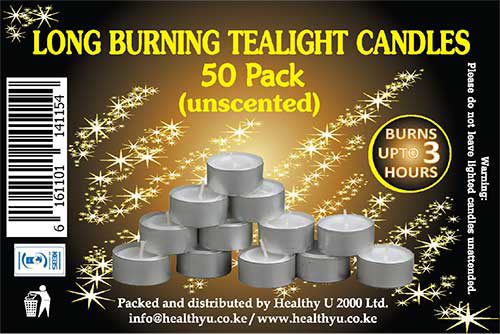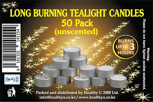 Long Buring Tealight Candles Label